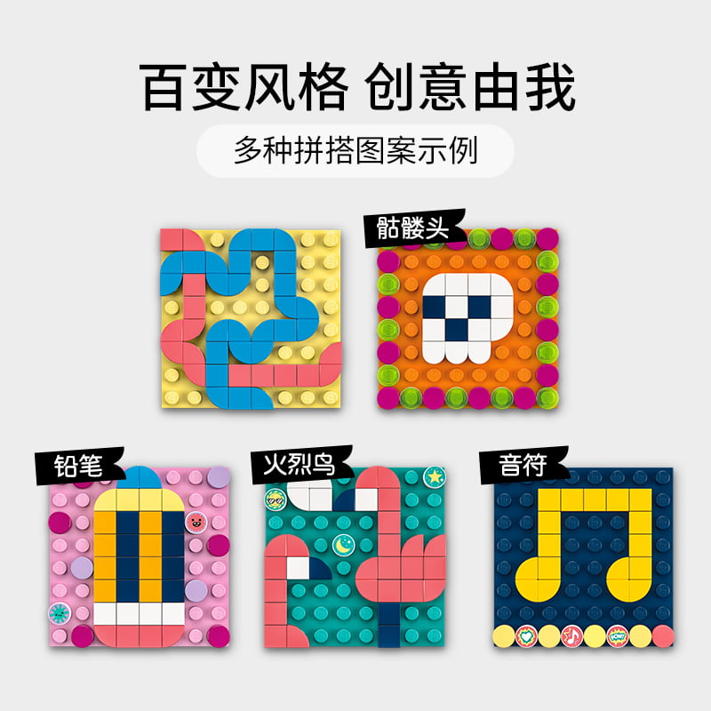 设计自信和自由——这款乐高® DOTS 组合能够充分释放孩子的创造力,其内含的装饰贴可以直接进行装饰,有助于孩子在方寸之间通过玩乐培养自己的创造力和自信心