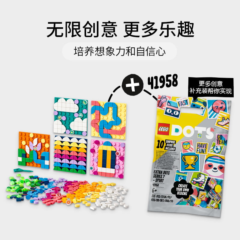 无限创意尽在盒中——这款乐高® DOTS 套装自身就非常有趣且充满创意。孩子们还可以通过 DOTS 补充装积木袋或丰富多彩的 DOTS 积木盒(单独出售)来扩展他们的设计